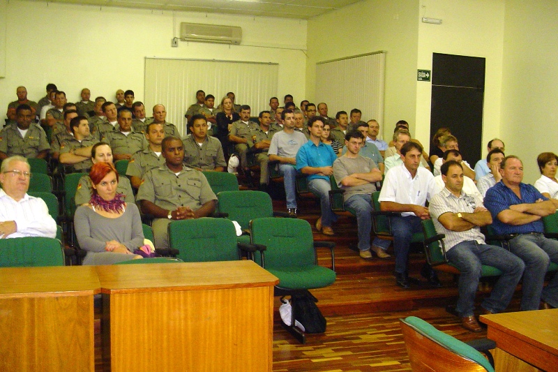 O Plenário Darcy Sobreira Soccol, na Câmara de Vereadores de Serafina Corrêa, foi palco nesta quinta-feira, 5 de Fevereiro, da reunião de serviço do 3° Batalhão de Policiamento de Áreas Turísticas, com sede em Bento Gonçalves. A reunião serviu para o Comandante Tenente Coronel Luiz Roberto Bonato, receber os 26 Comandantes de Frações da Brigada Militar, dos 26 municípios que compõe o referido Batalhão, para uma reunião de serviço.